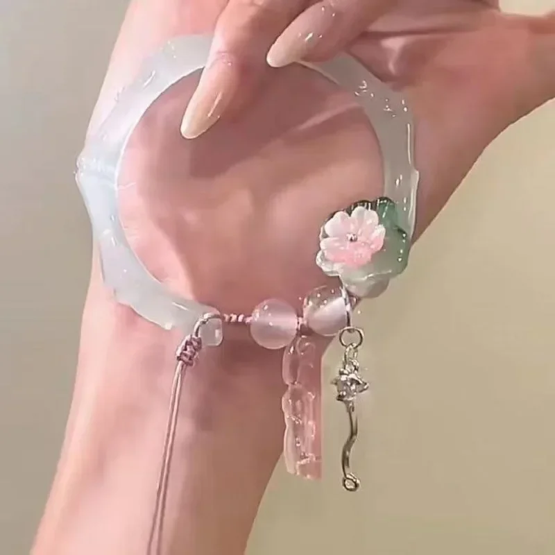 Korean Sweet Cute Flowers Pendant Beaded Bracelet For Women Green Crystal Glass Beaded Chain Bracelet Y2k Jewelry Gifts